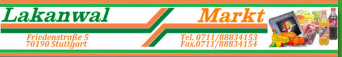 Friedenstraße 570190 StuttgartTel.: 0711/88834153Fax: 0711/88834154E-Mail: lakanwal-markt@o2mail.deWeb: www.lakanwal.comAnfahrt: Friedenstraße 5 Ecke Urbanstraße 95Stuttgart mitte Schauen Sie mal bei uns vorbeies lohnt sich